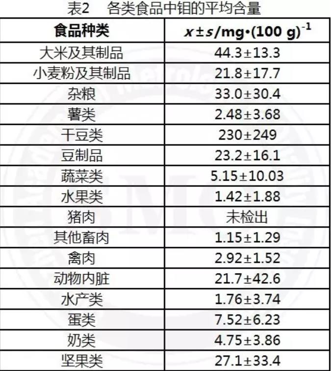 目前我国食品中钼的含量数据不足,未列入我国食品成分表中。